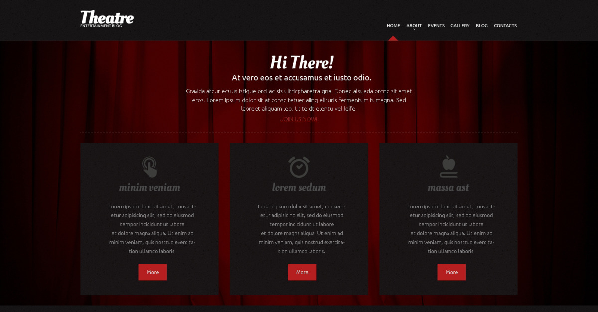Это дизайнерская тема WordPress для музыкального театра Bootstrap.