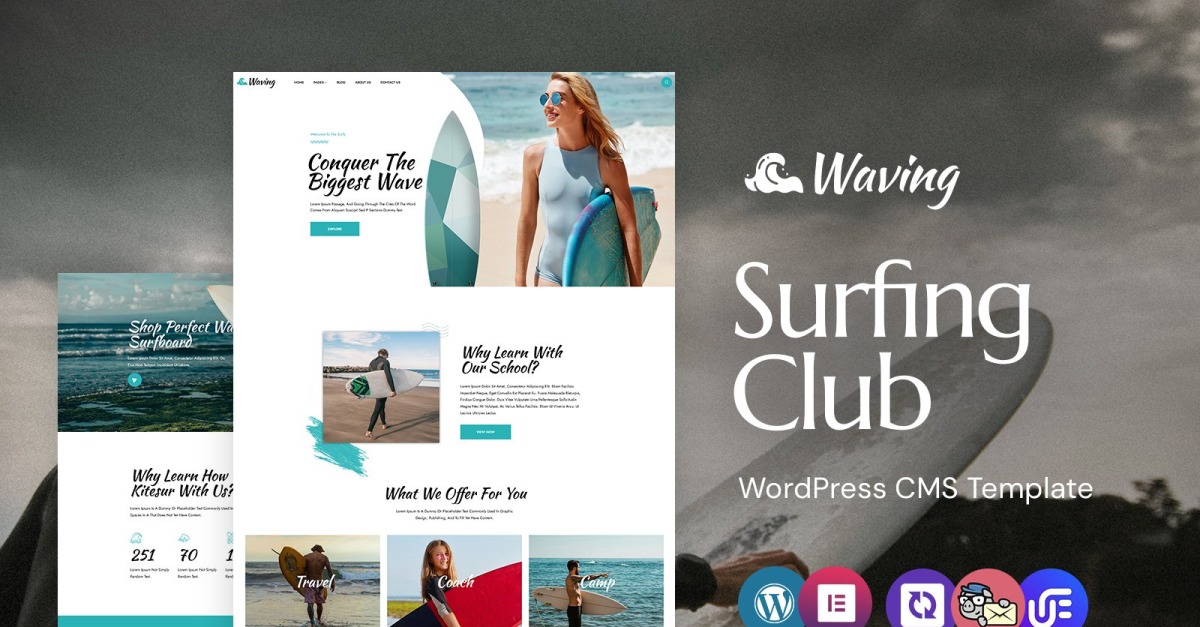 Waving - Surfing Board An Adventure WordPress Elementor Тема