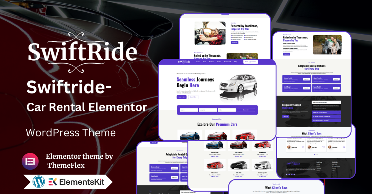 Приготовьтесь развивать свой бизнес по прокату автомобилей с помощью Swiftride – темы WordPress Elementor для проката автомобилей ! ?✨