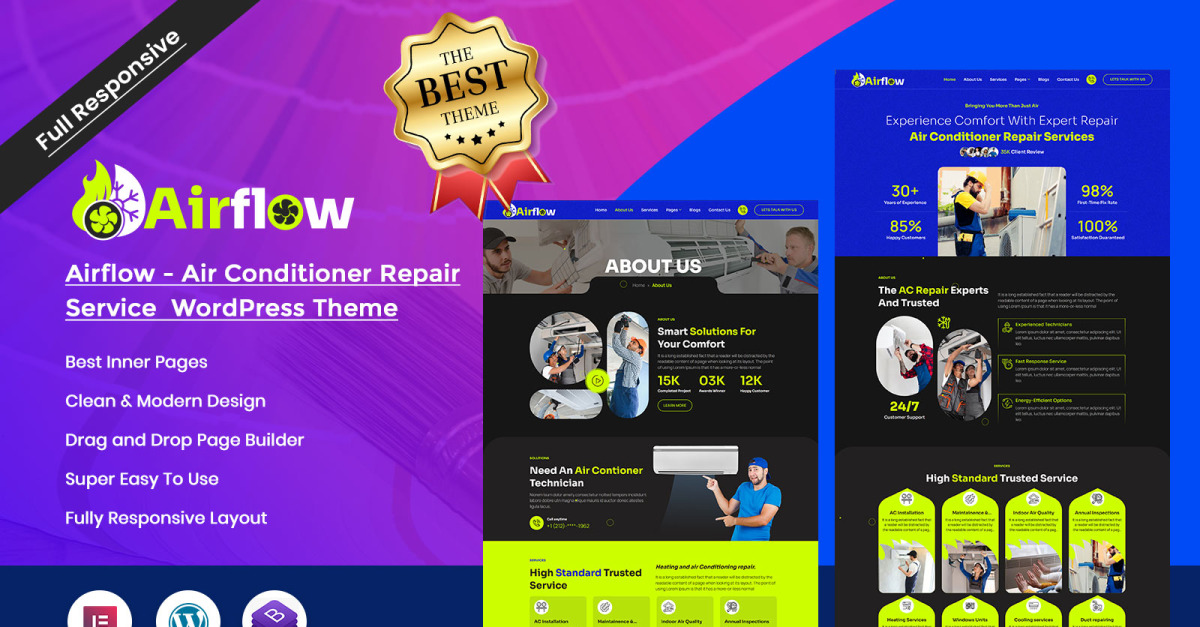 Airflow — это стильная и профессиональная тема WordPress, разработанная специально для компаний, занимающихся ремонтом кондиционеров, систем отопления, вентиляции и кондиционирования воздуха (HVAC) и бытовой техники. Она отличается чистым, современным дизайном с удобной навигацией, которая четко отображает ваши услуги, отзывы и контактную информацию. Благодаря встроенным формам записи на прием и опциям запроса на обслуживание, взаимодействие с клиентами становится максимально простым. Тема адаптирована для мобильных устройств, оптимизирована для SEO и легко настраивается с помощью Elementor. Независимо от того, управляете ли вы местной ремонтной службой или крупным бизнесом по обслуживанию систем HVAC, Airflow придаст вашему сайту безупречный вид и поможет мгновенно завоевать доверие клиентов. Продвигайте свои знания и привлекайте больше потенциальных клиентов с помощью этой высокопроизводительной и удобной темы.