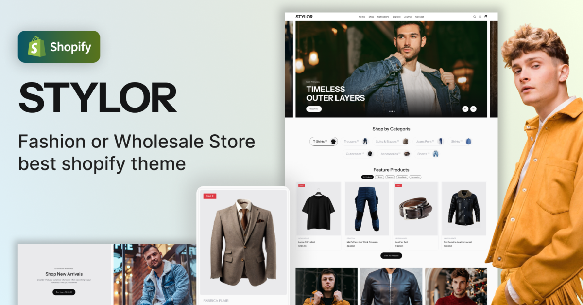 Stylor - Men's Clothing & Fashion Store Shopify Theme combines style, functionality, and flexibility to empower fashion retailers with a platform tailored to their needs. Whether you’re launching a new store or upgrading an existing one, Stylor is designed to deliver a superior online shopping experience that captivates your audience and drives conversions. Make your fashion store stand out with Stylor’s professional design and powerful features!