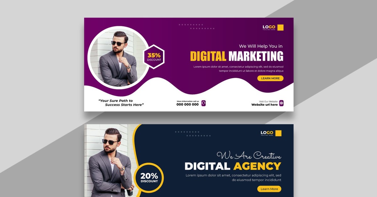 Promote your business with this Digital Marketing Facebook Cover Banner Template, created in Adobe Illustrator for a clean and professional design. Perfect for marketing agencies, freelancers, and creative brands, this template helps you highlight your services and build a strong online presence. It features bold typography, modern layout, and vibrant color accents that draw attention to your brand. The file is fully editable, allowing you to customize text, colors, and images to match your style. Optimized for Facebookâs cover dimensions, it ensures a sharp and polished look on any device. Give your page a professional edge with this eye-catching banner template.