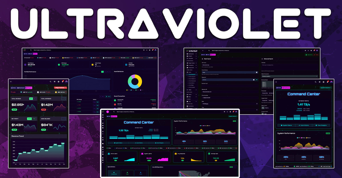 UltraViolet Pro: Bootstrap 5 statisk HTML-mall för admin-instrumentpanel med HUD, mörkt läge och RTL