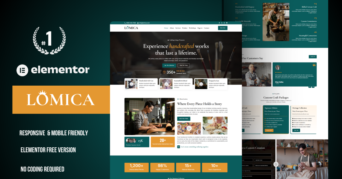 Lomica – Hantverks- och hantverksmässigt Elementor-mallkit