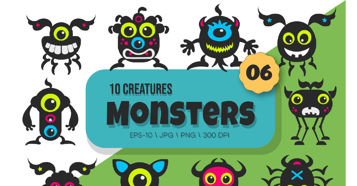 Nyckfulla monsterpaket 06. T-shirt, PNG. GRATIS.