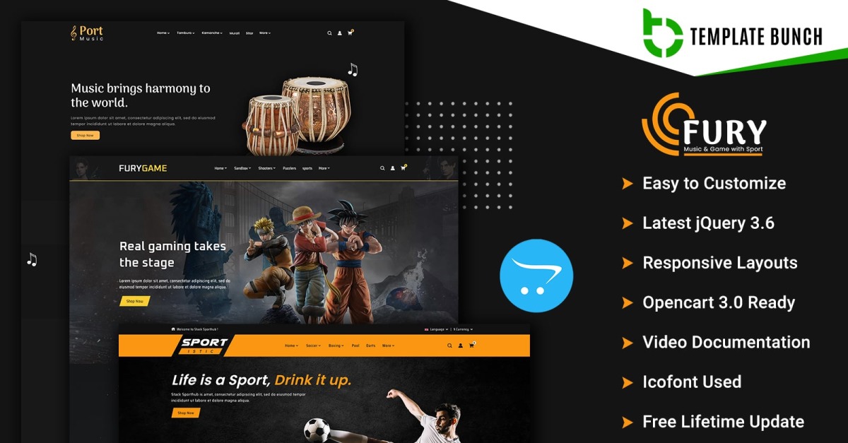 Fury - Musik och spel med sport - Responsivt OpenCart-tema för e-handel