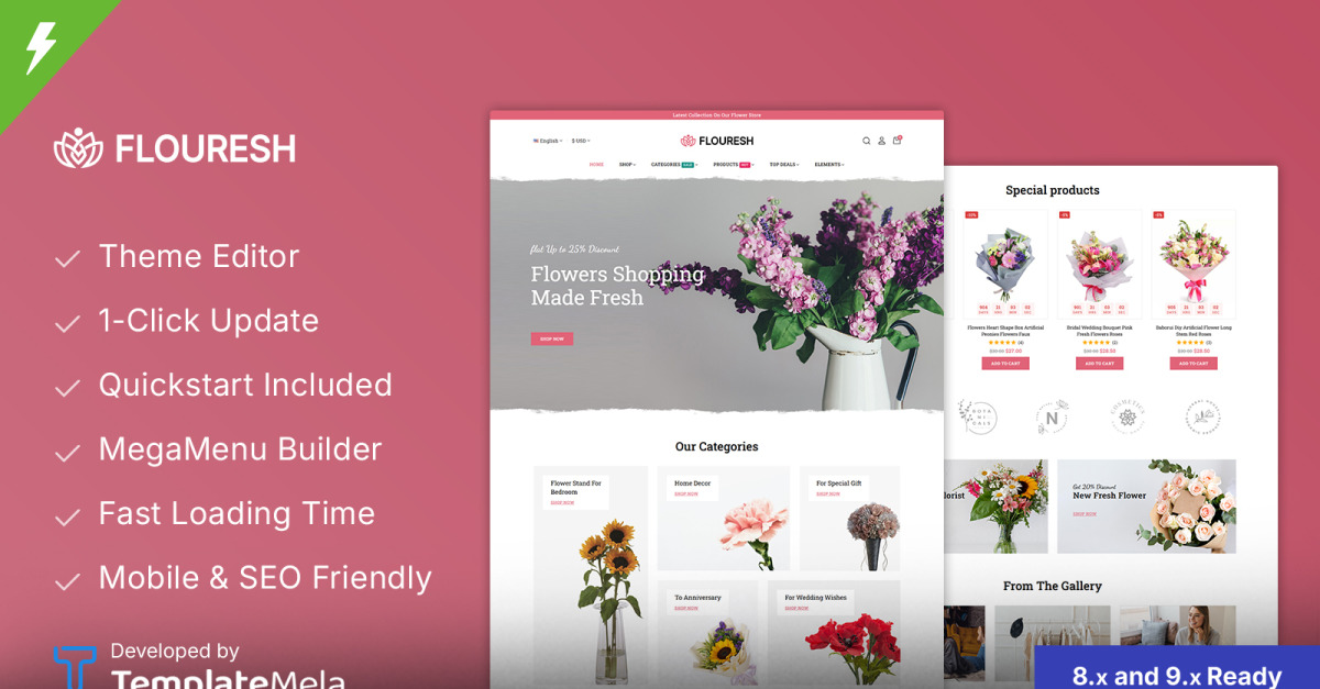 Flouresh - Blomster- och presentbutik PrestaShop-tema
