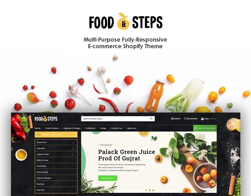 Food Steps - Shopify-temat för ekologiskt och matsvarigt