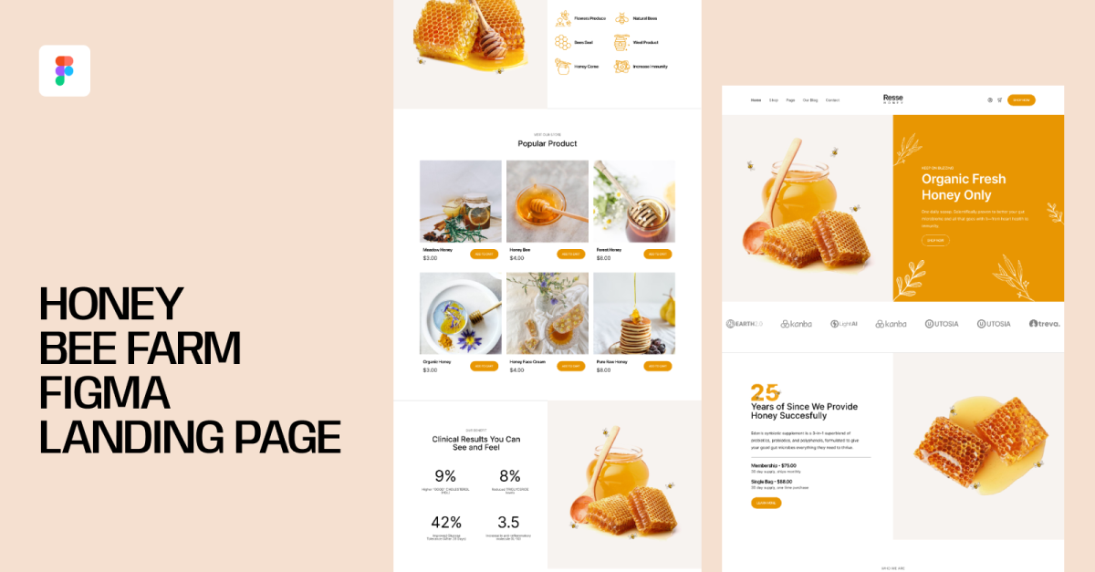 Mat & Dryck, Mallar för honungsbutik, Mallar för gård, Jordbruk, Företag & tjänster
