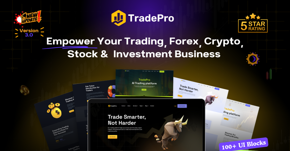 TradePro stands out with its impeccable design and unparalleled support, earning a solid five-star rating. The seamless code quality and effortless customization make it the perfect choice for diverse projects. Highly recommended!