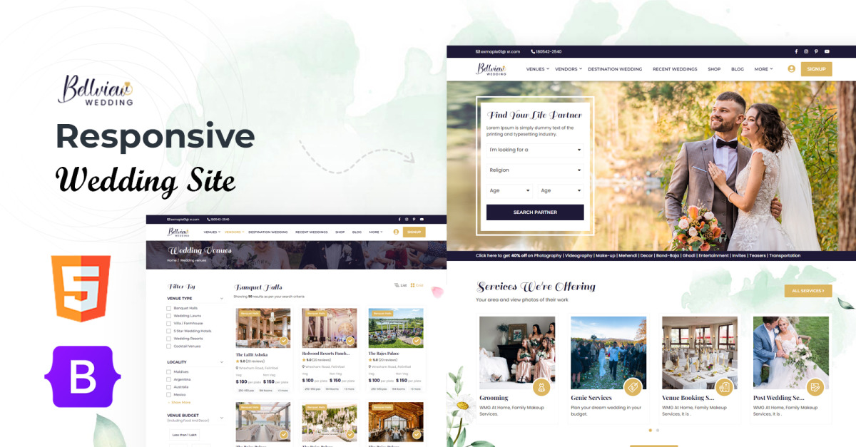 BD Wedding - HTML5 webbplatsmall för bröllopsplanerare, evenemang, äktenskap