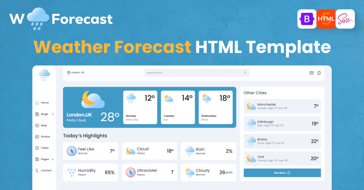 Väderprognos - Omfattande väderprognoser Responsiv HTML Bootstrap-mall