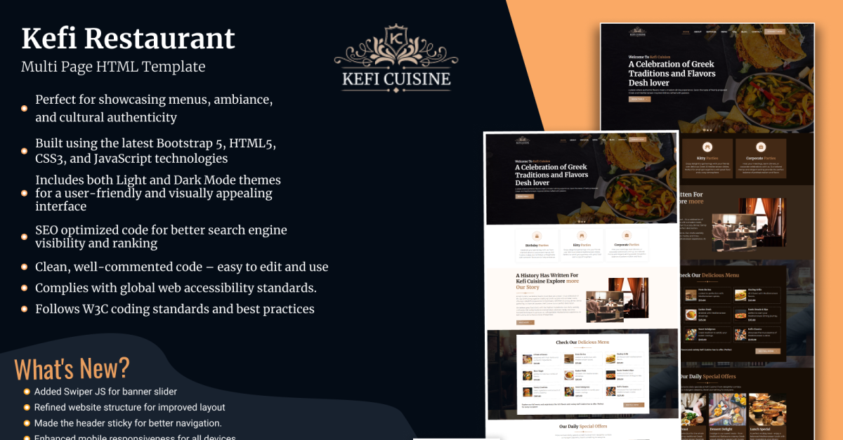 Kefi Cuisine - Grekisk restaurang Flersidig webbplatsmall