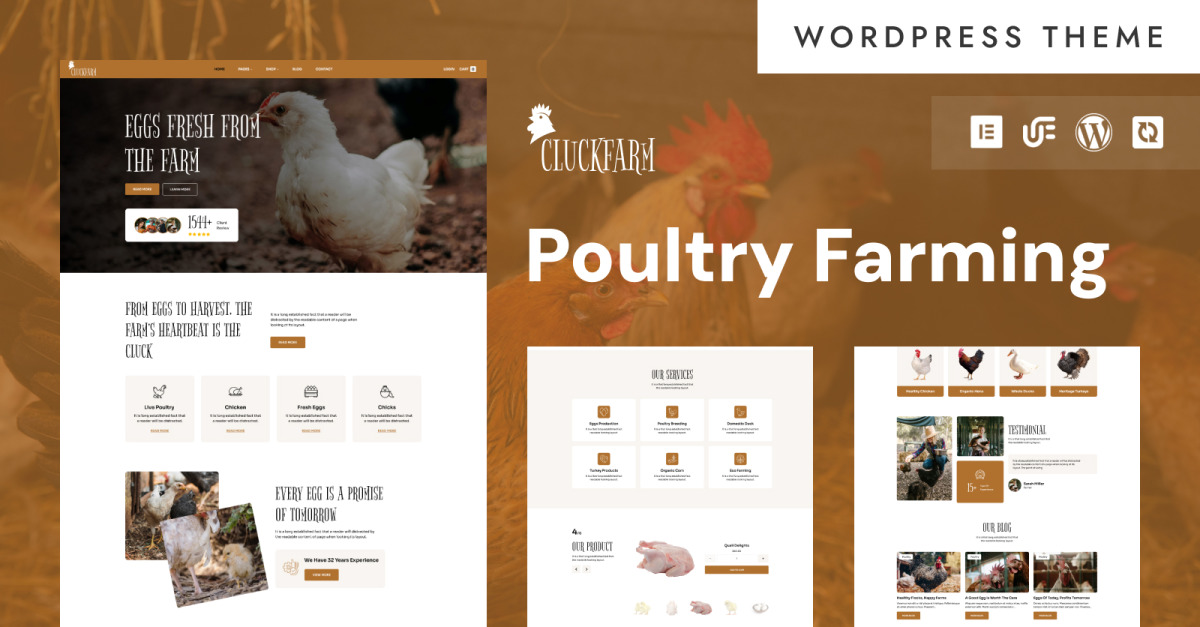 CluckFarm - WooCommerce Elementor-tema för ekologisk ägg- och fjäderfäuppfödning