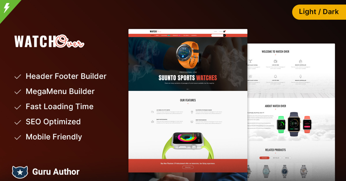 WatchOver - Enkelprodukt Elementor WooCommerce-tema