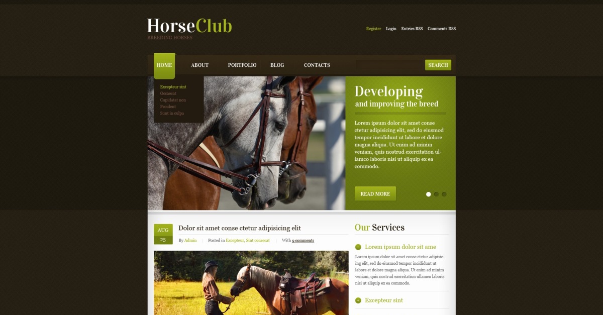Gratis Horse Club WordPress -tema och webbplatsmall