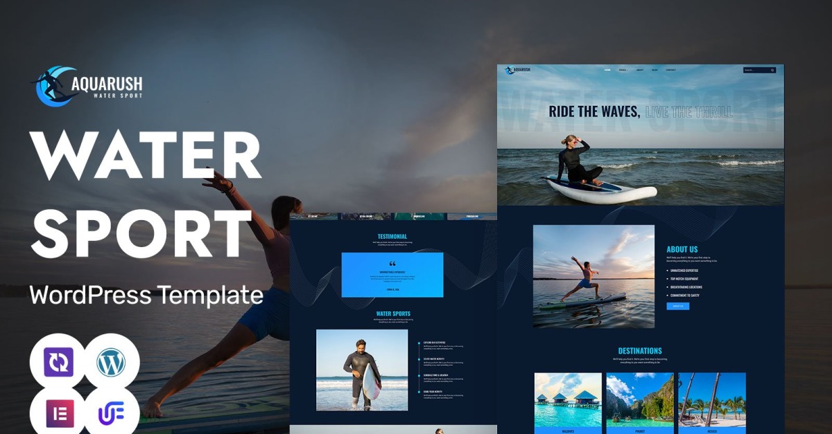 Aqua Rush - Vattensporter och äventyr WordPress Elementor-tema