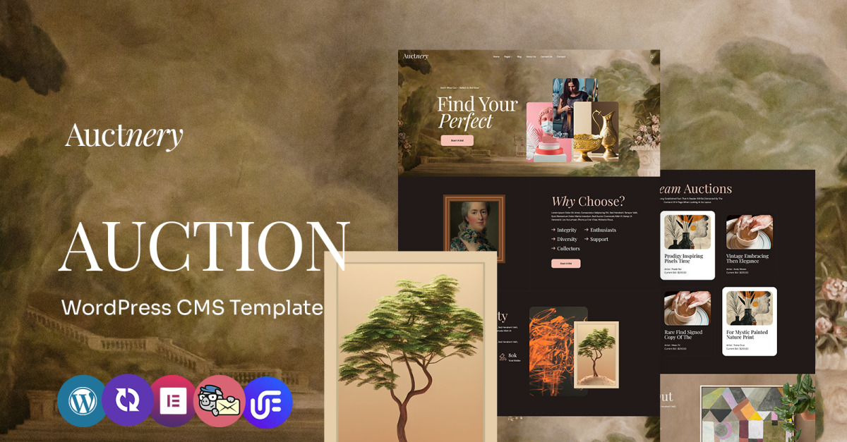 Auktnery - Auktioner, konst och antikförsäljning Multipurpose WordPress Elementor Theme