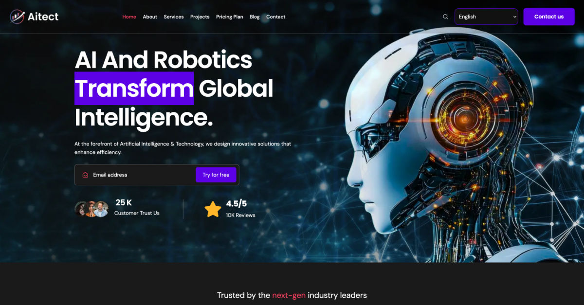 Aitect - Wordpress-tema för artificiell intelligens och teknologi