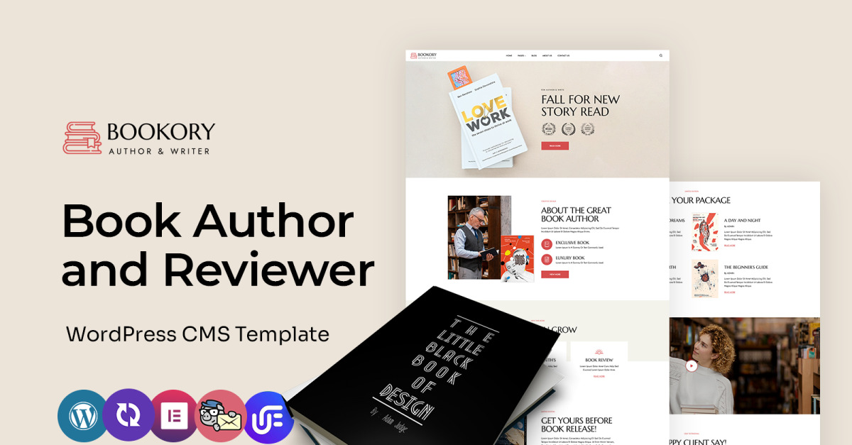 Bookory - Bokförfattare och bokrecensent Multifunktionellt WordPress Elementor-tema