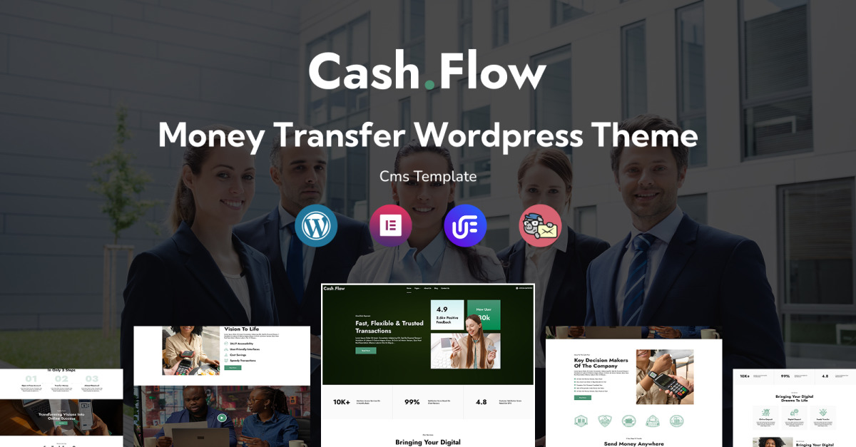 Cashflow – Pengaöverföring och finansiella tjänster, mångsidigt responsivt WordPress-tema