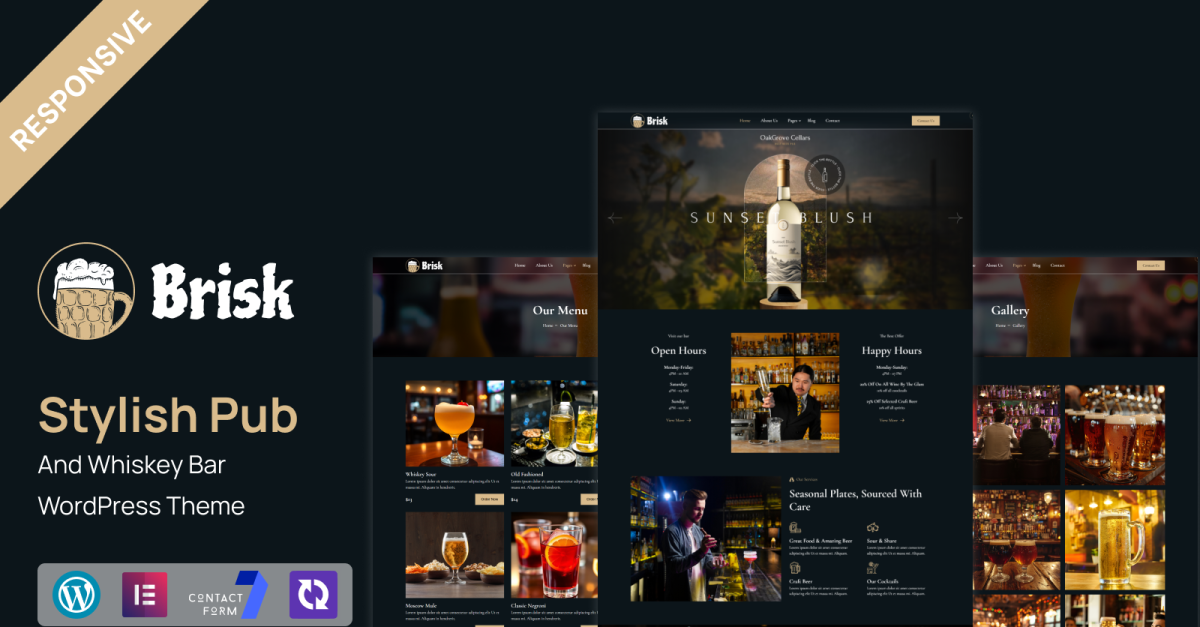 Brisk – Snyggt WordPress Elementor-tema för pubar och whiskybarer