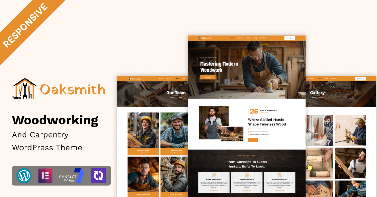 Oaksmith – Multifunktionellt WordPress Elementor-tema för hantverkare, träbearbetning och snickeri