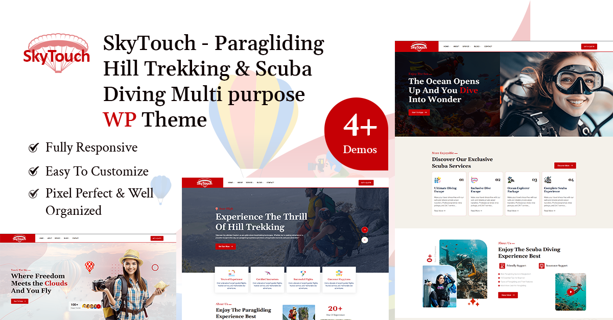 SkyTouch - Paragliding, bergsvandring och dykning. Multifunktionellt WP-tema.