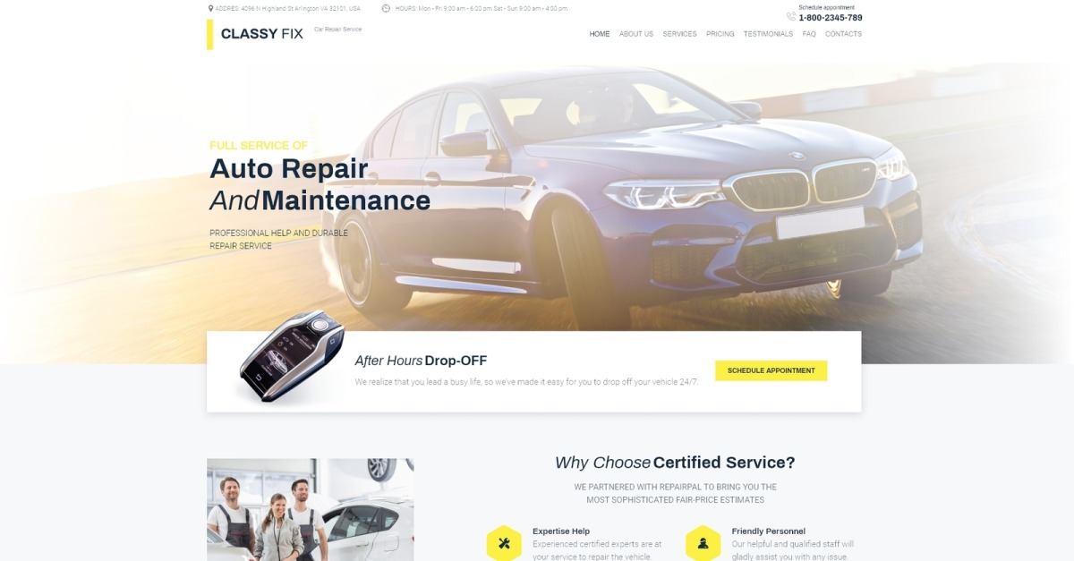Classy Fix - Bilreparation WordPress Elementor-tema