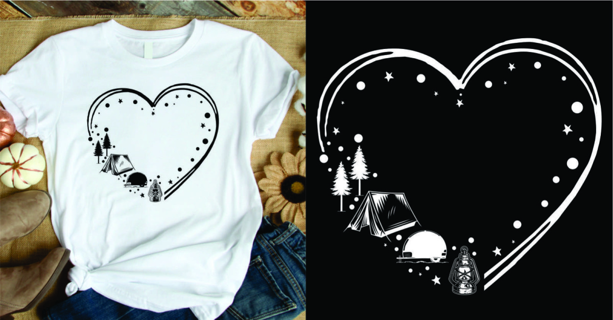 Camping Heart Digital T-Shirt Design | Adventure Lover File for Outdoor and Nature Enthusiasts