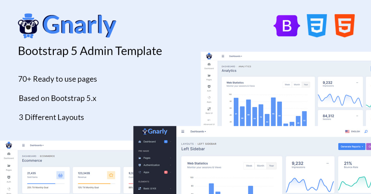 Gnarly, Bootstrap 5'in en son sürümüyle oluşturulmuştur ve tamamen duyarlıdır ve tüm cihazlarda harika bir kullanıcı deneyimi sağlar. Çoklu panolar, kullanıcı yönetimi uygulamaları, gelen kutusu uygulamaları ve çok daha fazlası gibi çok sayıda önceden oluşturulmuş sayfa ile birlikte gelir.