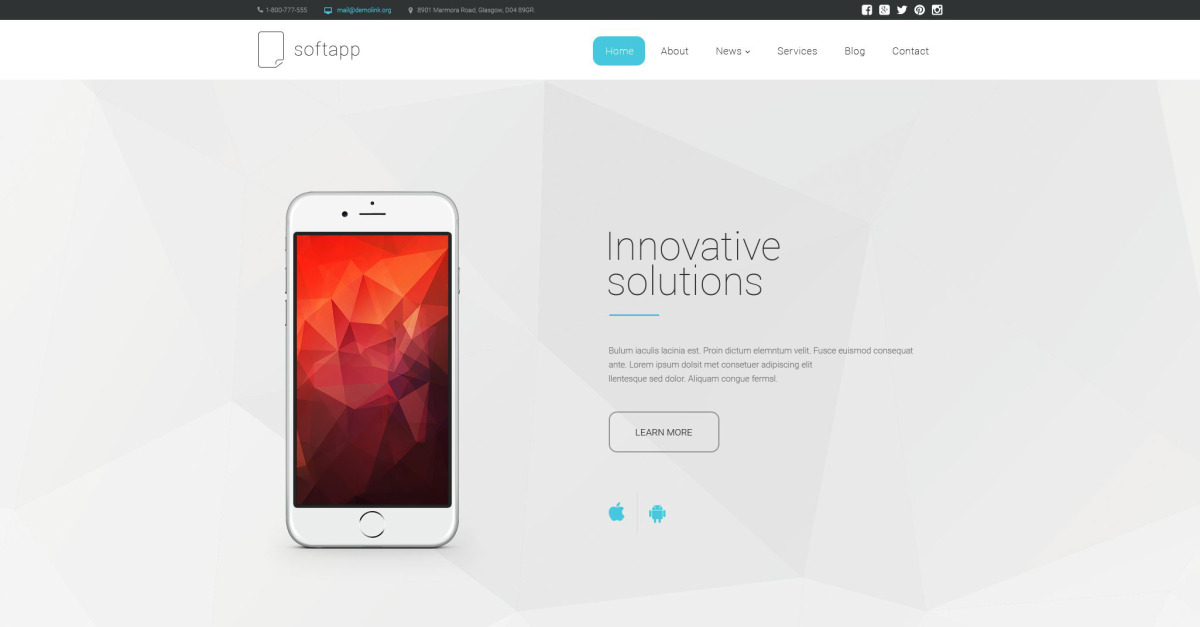 Açık gri ve mavi renklerde tasarlanan tema bilişim ve yazılım firmaları için harikadır. Çokgen arka plan, yazılım Drupal şablon düzenini daha da moda hale getirir. Hayalet düğmeler ve kabataslak öğeler oldukça minimalist bir görünüme sahiptir. En iyi yazılım özellikleri, dikey olarak numaralandırılmış bir listede sunulur. Müşterilerin referansları kaydırıcıda gelir. İletişim formu, ek gezinme altbilgisi bağlantılarının hemen üzerine yerleştirilmiştir. Sosyal paylaşım bloğu, web sayfasının sağ üst köşesinde bulunabilir.