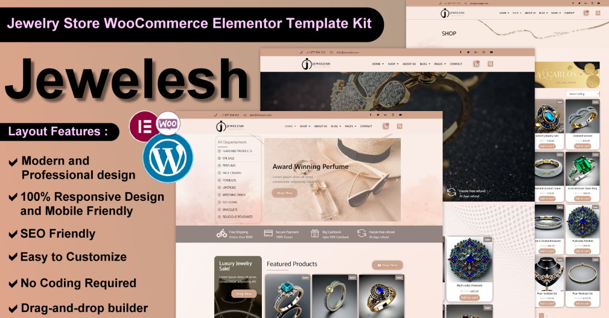 Jewelesh - Mücevher ve Kozmetik Mağazası WooCommerce Elementor Şablon Kiti