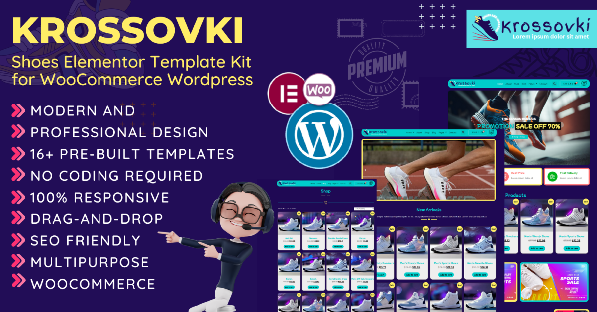 Krossovki - Koşu Ayakkabısı, Spor Mağazası WooCommerce Elementor şablon kiti