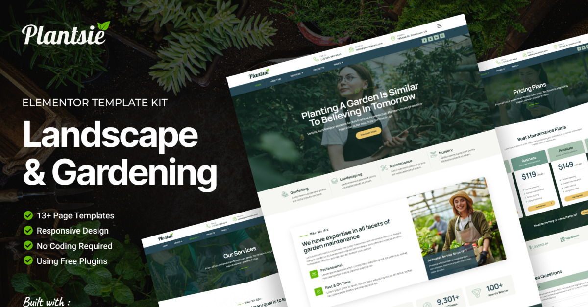 Plantsie - Peyzaj ve Bahçe Hizmetleri Elementor Kiti