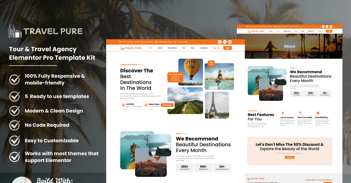 Travel Pure – Seyahat ve Tur Acentesi Elementor Pro Şablon Seti