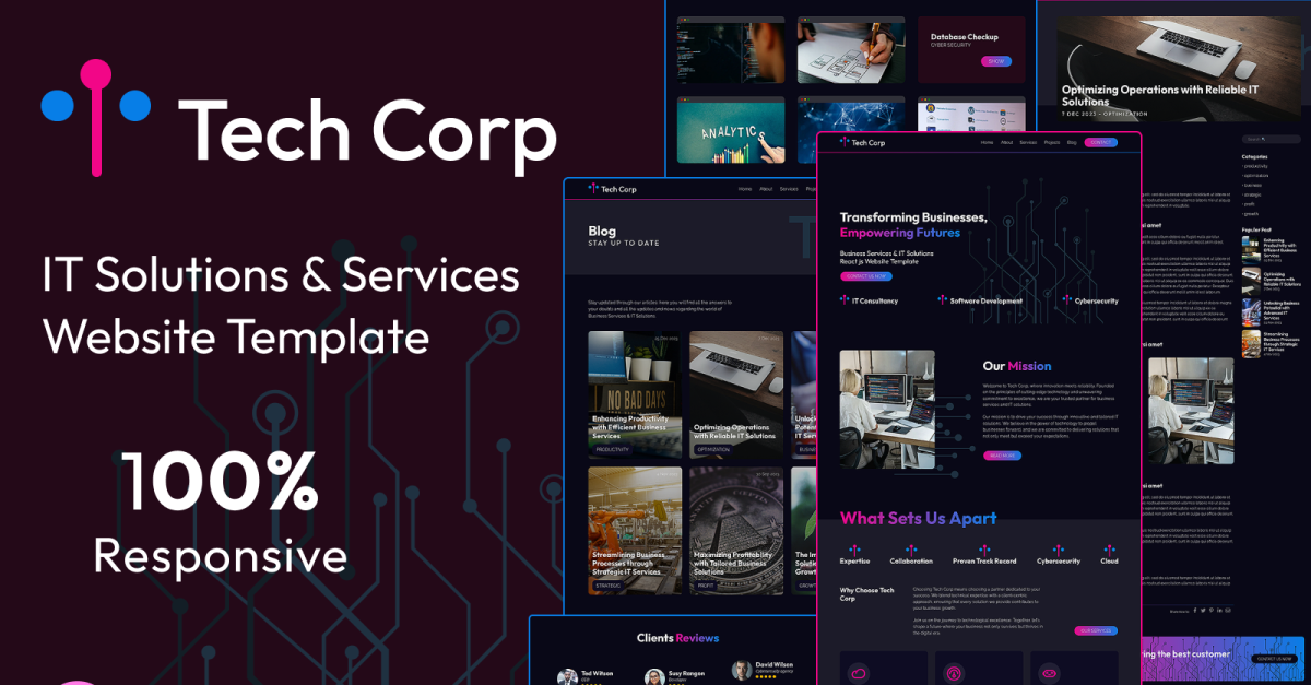 Tech Corp - Dijital İş Hizmetleri ve BT Yazılımı için Elementor Kit Wordpress Şablonu