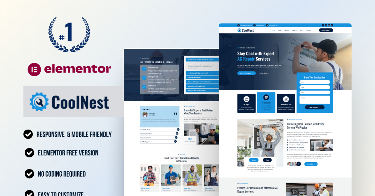 CoolNest – Klima Tamiri ve HVAC Hizmetleri WordPress Elementor Şablon Seti