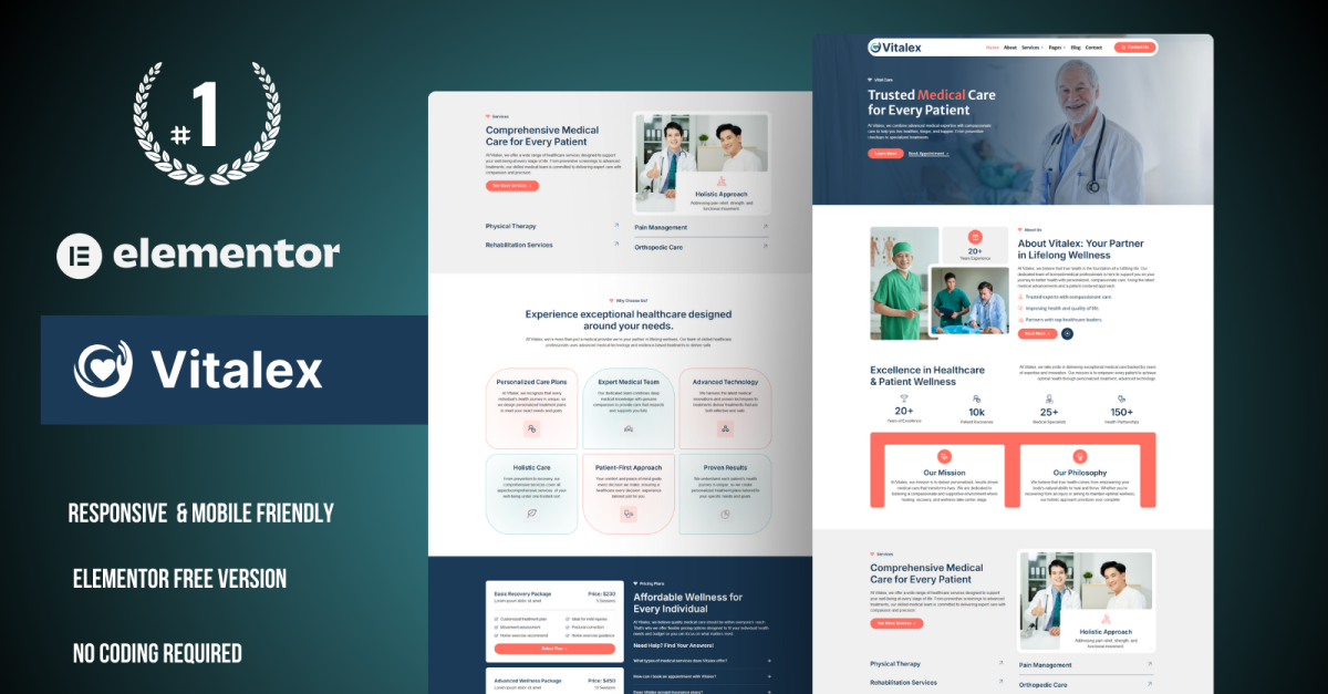 Vitalex – Tıbbi Bakım WordPress Elementor Şablon Seti