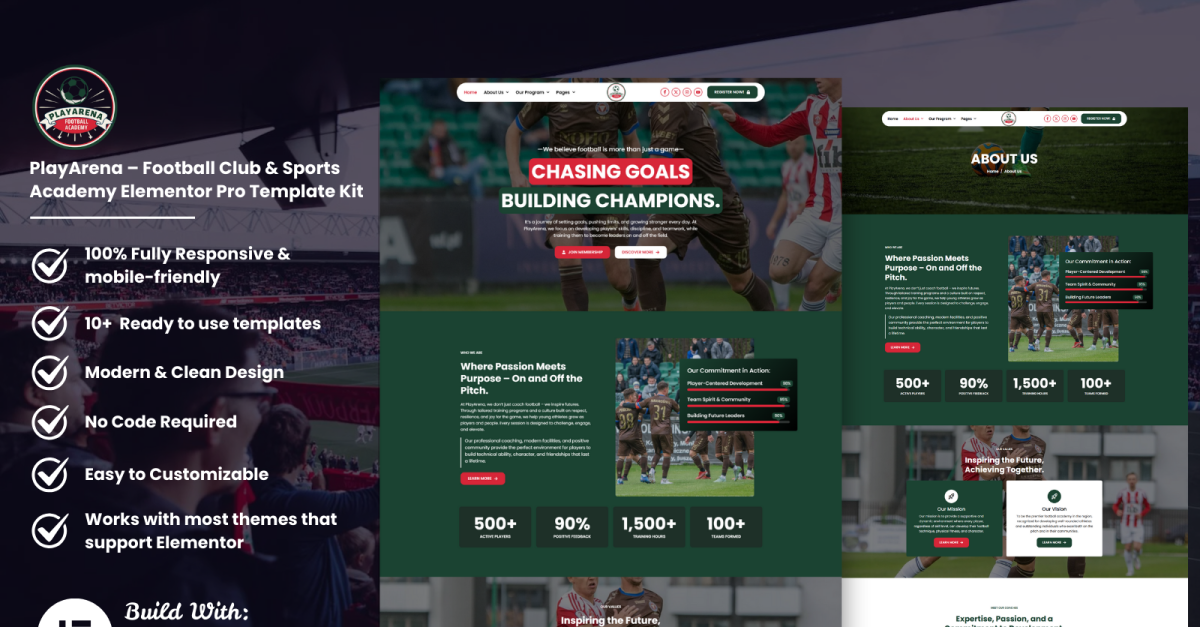 PlayArena - Futbol Kulübü ve Spor Akademisi Elementor Pro Şablon Seti