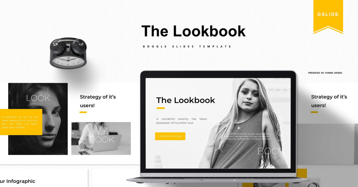Bu **Lookbook | Google Slaytlar Şablonu**- Hemen edinin!, Tüm ticari veya kişisel ihtiyaçlar için harika bir Google Slaytlar şablonu.