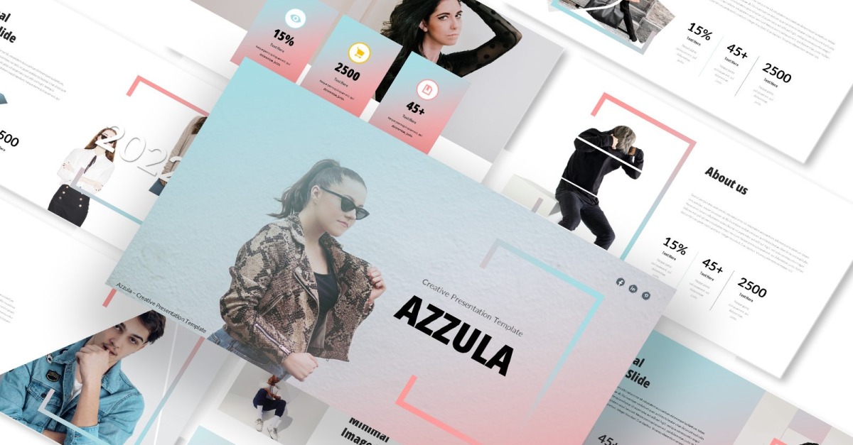 Azzula – Yaratıcı Ajans Google Slayt Sunumu, moda, web sitesi ajansı, fotoğrafçılık endüstrisi, model ve diğer endüstriler gibi yaratıcı sektöre uygun, düz tasarımlı, temiz, minimalist, modern sunumlu bir yaratıcı ajans Google Slaytlar şablonudur.