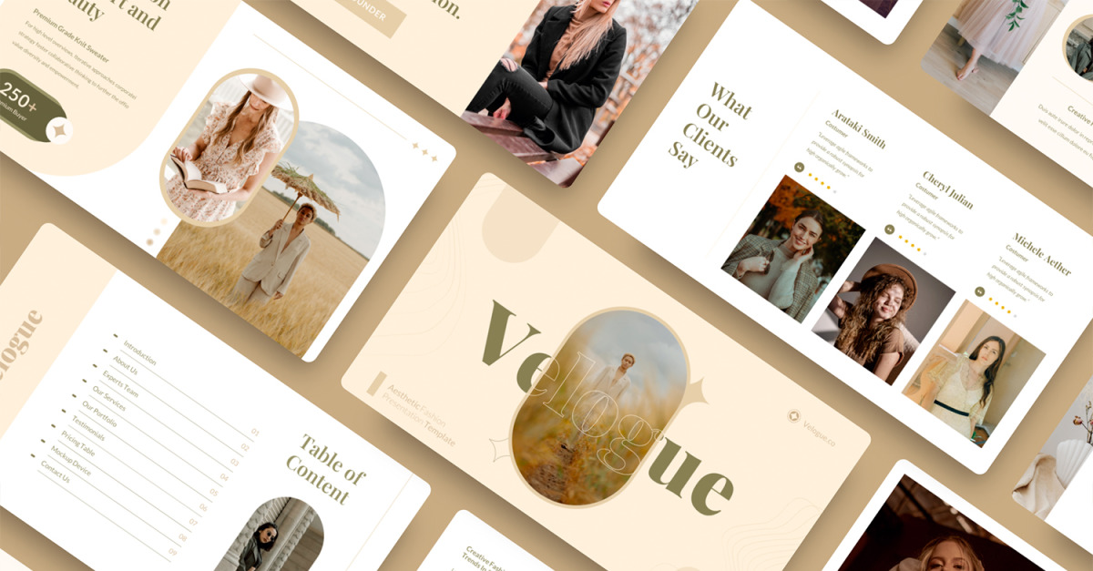 Velogue Tanıtımı - Estetik Moda Google Slayt Sunum Şablonu