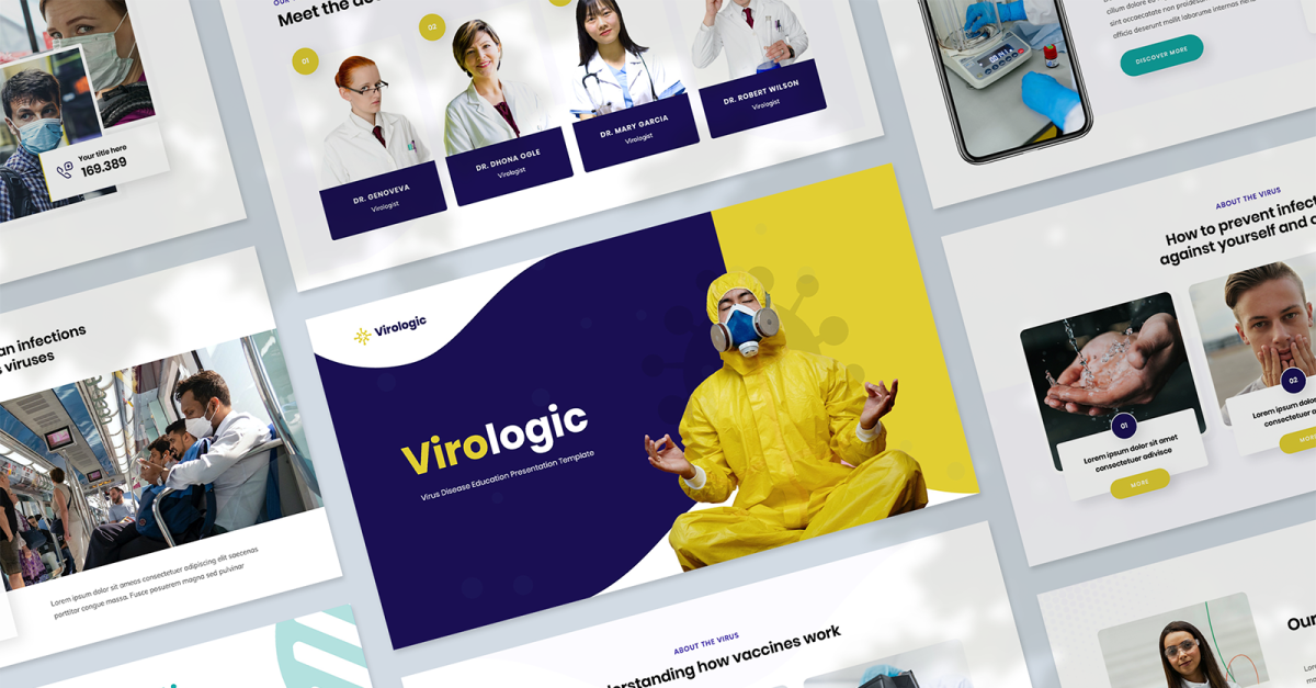 Kitlenizi şaşırtmak için modern ve temiz bir sunum oluşturmak istiyorsanız, başka yere bakmanıza gerek yok. Google Slaytlar için Virologic Sunum Şablonu, herhangi bir profesyonel ve ticari ihtiyacınıza uyacak şekilde kolayca düzenlenebilen 34 şık görünümlü slayt içerir.