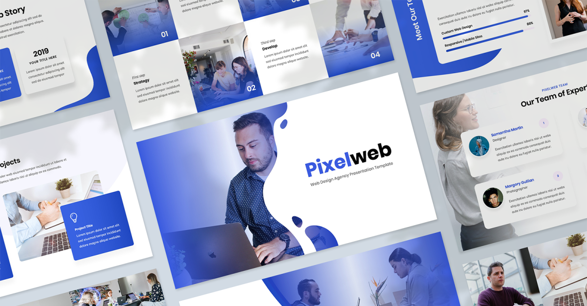 Pixelweb Sunum Şablonunu oluştururken öncelikli odak noktamız web tasarım sektöründe çalışan veya web tasarım acentesi olarak çalışan şirketler ve bireylerdi. Ayrıca UX ve UI tasarımcıları, web geliştiricileri, grafik tasarımcıları, kodlayıcılar ve serbest çalışanlar tarafından da kullanılabilir. Dönen web sitelerine dijital hizmet satmaya çalışan herhangi bir kişi veya şirket için mükemmeldir. İster önemli bir yeni müşteriye ister bir işletme portföyüne teklif veriyor olun, bu Google Slaytlar şablonu, bilgilerinizi ve verilerinizi hızlı ve verimli bir şekilde sunuma dönüştürmenize olanak tanır.