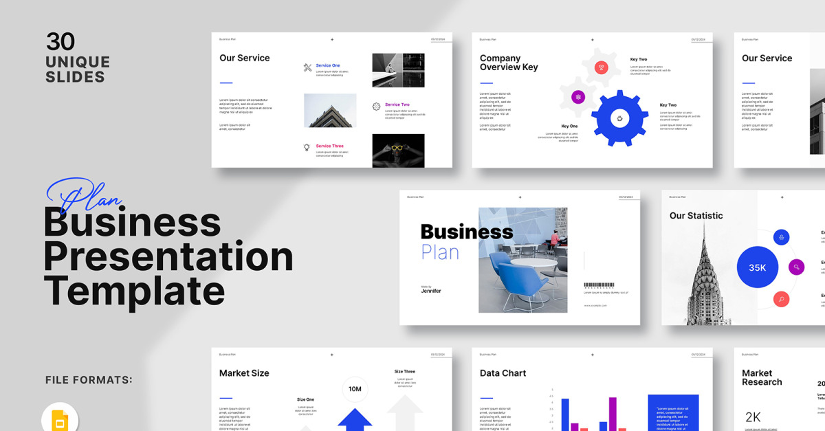 İş Planı Google Slayt Sunum Şablonu, logonuzu ve resimlerinizi eklemenize, marka renklerinizi ve tipografinizi düzenlemenize olanak tanır; hazırsınız. Zamanınızı boşa harcamayın, tüm zor işleri sizin için yaptık.