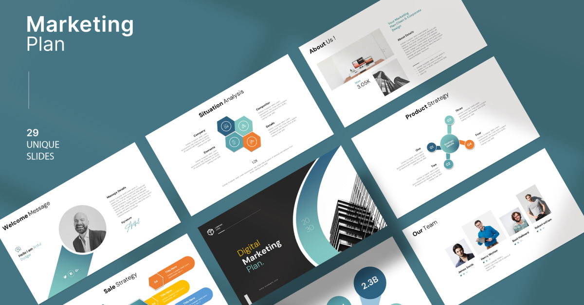 Marketing Plan Google Slayt Şablonu, logonuzu ve görsellerinizi eklemenize ve marka renklerinizi ve tipografinizi düzenlemenize olanak tanır ve hazırsınız. Zamanınızı boşa harcamayın, tüm zor işi sizin için biz yaptık.