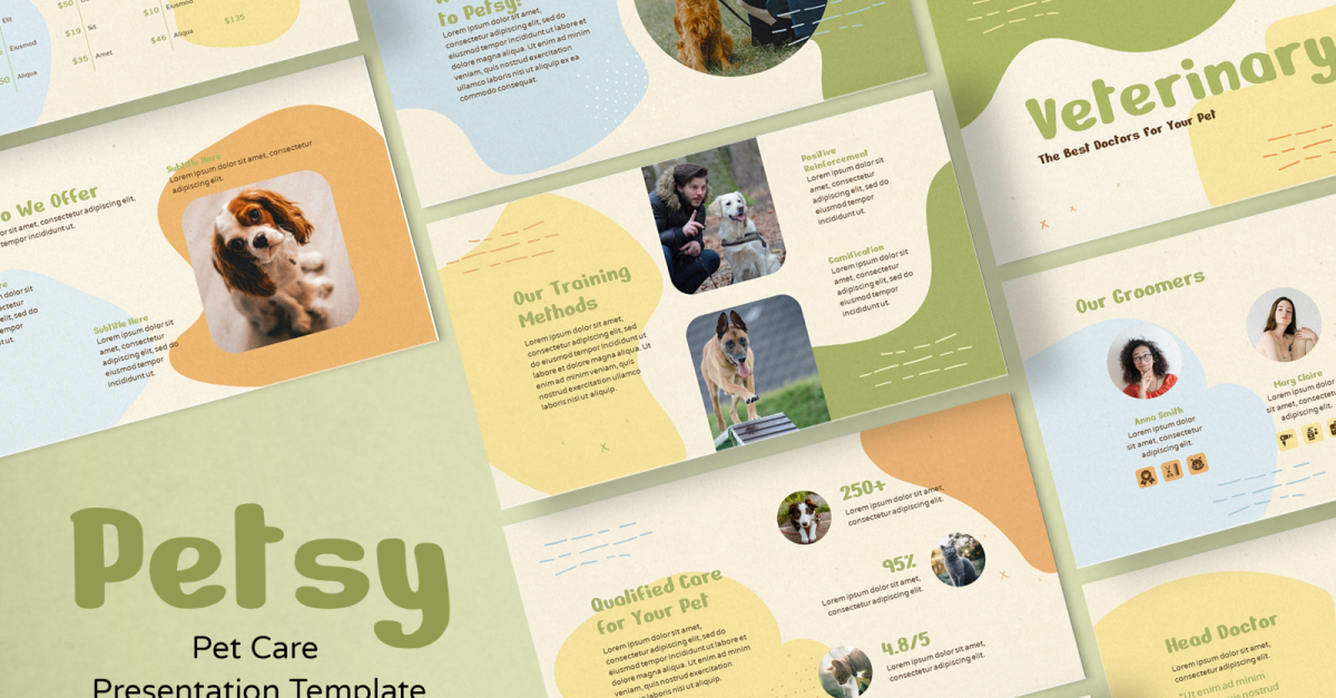 Petsy Pet Care Sunum Şablonu'nu oluştururken, birincil odak noktamız evcil hayvan bakımı, veteriner klinikleri, kuaförlük, evcil hayvan otelleri ve eğitmenlik alanlarında çalışan şirketler ve bireylerdi. İster önemli bir yeni müşteriye ister bir iş portföyüne teklif veriyor olun, bu PowerPoint şablonu bilgilerinizi ve verilerinizi hızlı ve etkili bir şekilde bir sunuma dönüştürmenize olanak tanır.