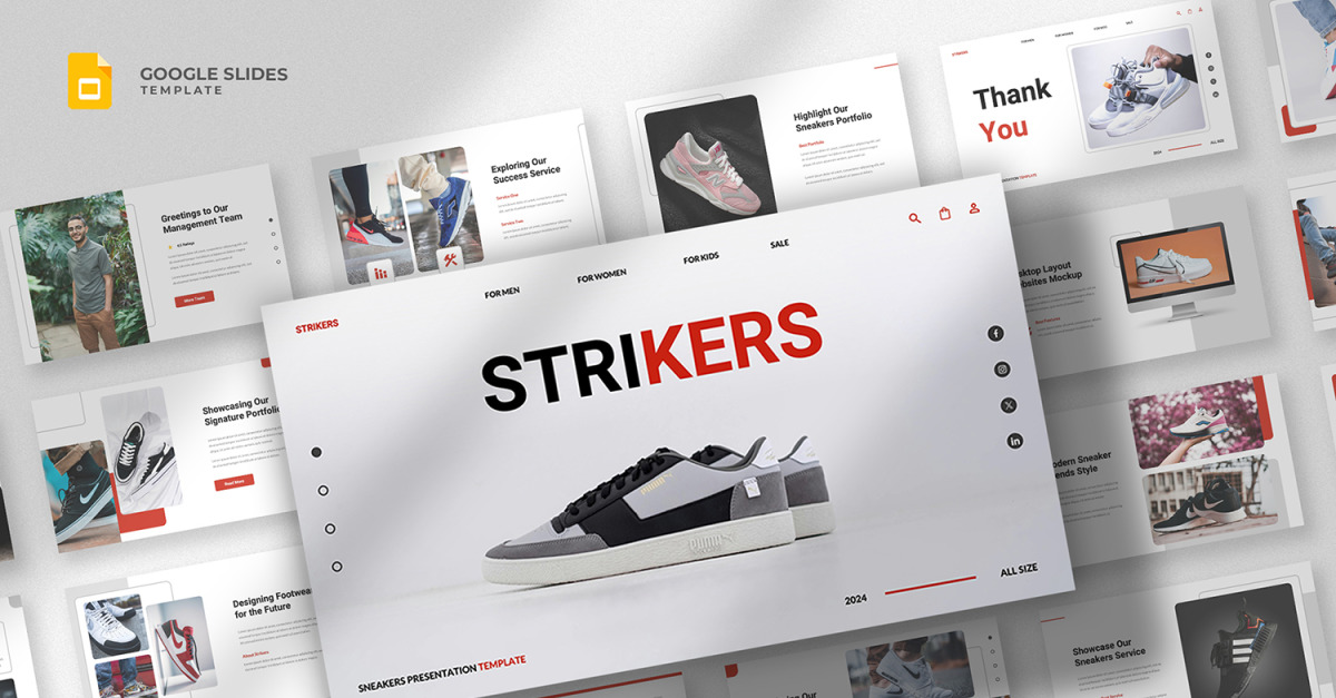 Strikers - Spor Ayakkabılar ve Ayakkabılar Google Slayt Şablonu