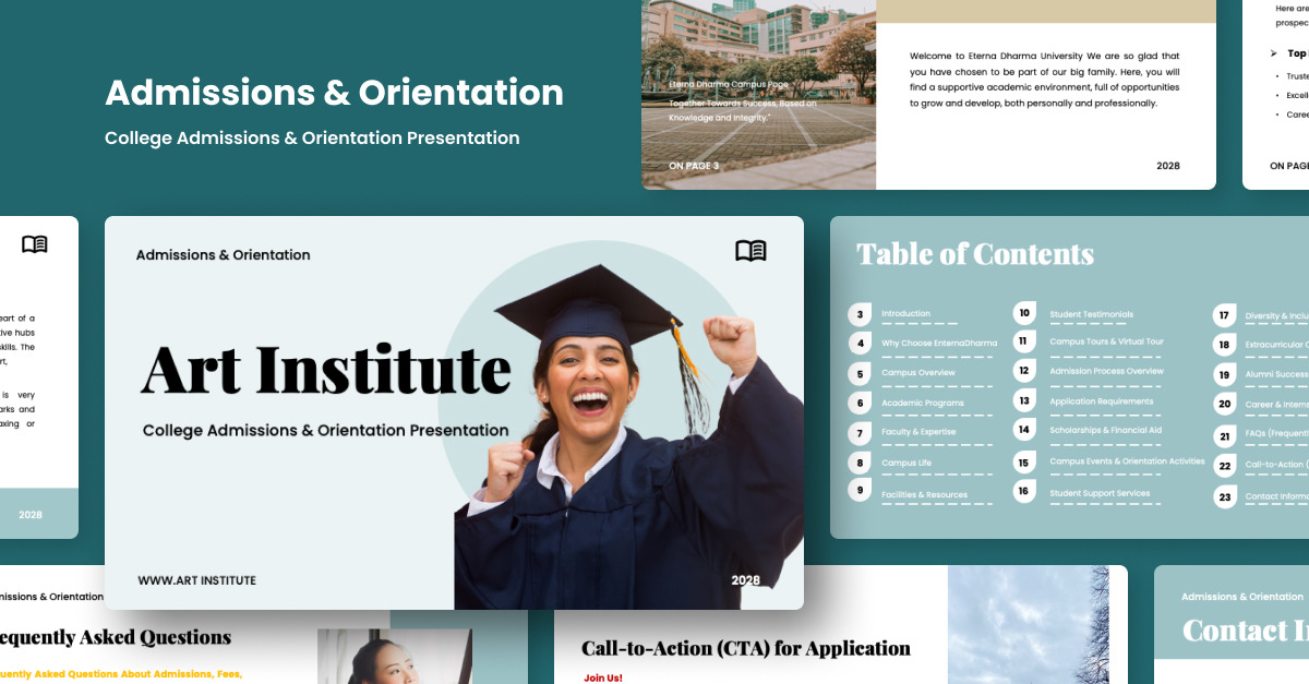 Bu işbirlikçi Google Slaytlar tasarımıyla yeni öğrencilere akademik yolculuklarında rehberlik edin. Çevrimiçi açık günler veya oryantasyon etkinlikleri için idealdir, erişilebilirliği ve görsel netliği teşvik eder.